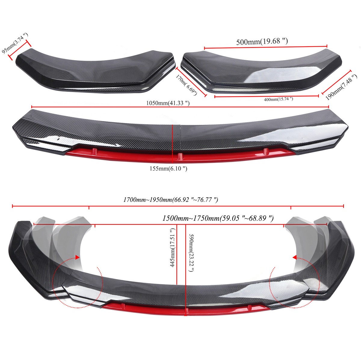 The size of a front lip significantly affects both aesthetics and function. Key measurements include: