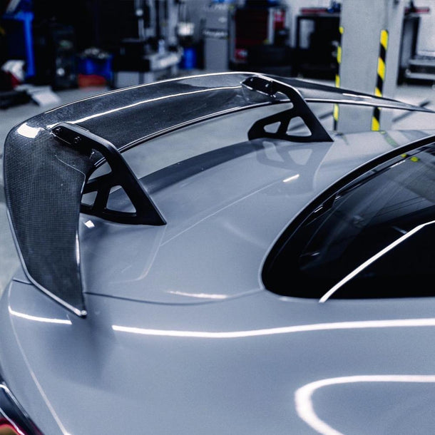 Elevate the aesthetics and aerodynamics of your BMW with the ADRO Style Swan Neck Carbon Fiber Spoiler, a perfect blend of functionality and elegance for the BMW M3 G80 and M4 G82/G83 models.