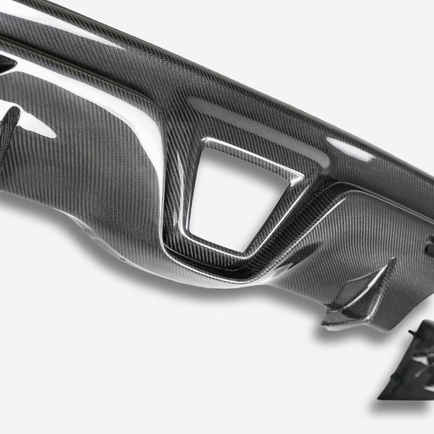 - High-Quality Carbon Fiber: Made from real carbon fiber, this rear diffuser features a 2x2 carbon fiber weave, providing a perfect blend of strength and lightweight efficiency.