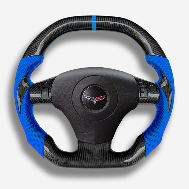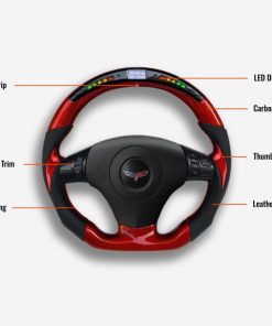The Corvette C6 steering wheel is meticulously handcrafted from premium Japanese carbon fiber and beautifully wrapped in Italian leather, enhancing the aesthetics of your car and providing better control. The ergonomic, sporty design ensures a more responsive and engaging driving experience. Designed specifically for the Corvette C6, it fits seamlessly and provides a superior grip. The carbon fiber is coated with a UV-resistant layer to protect against the elements. For an even more thrilling drive, consider adding an LED strip. Perfect for Corvette enthusiasts looking to build a high-end custom interior.