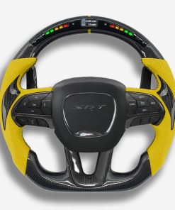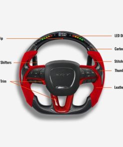 The Dodge steering wheel is meticulously handcrafted from premium Japanese carbon fiber and beautifully wrapped in Italian leather, enhancing the aesthetics of your car and providing better control. The ergonomic, sporty design ensures a more responsive and engaging driving experience. Designed specifically for the Dodge Charger, Challenger & Durango models, it fits seamlessly and provides a superior grip. The carbon fiber is coated with a UV-resistant layer to protect against the elements. For an even more thrilling drive, consider adding an LED strip. Perfect for Dodge enthusiasts looking to build a high-end custom interior.