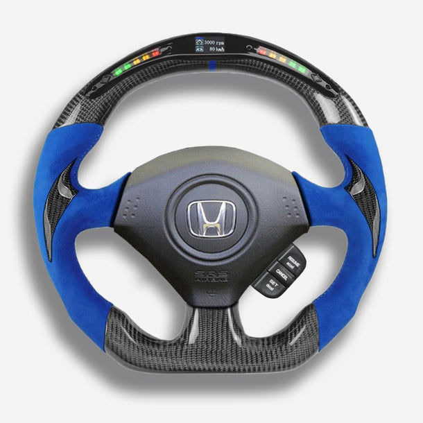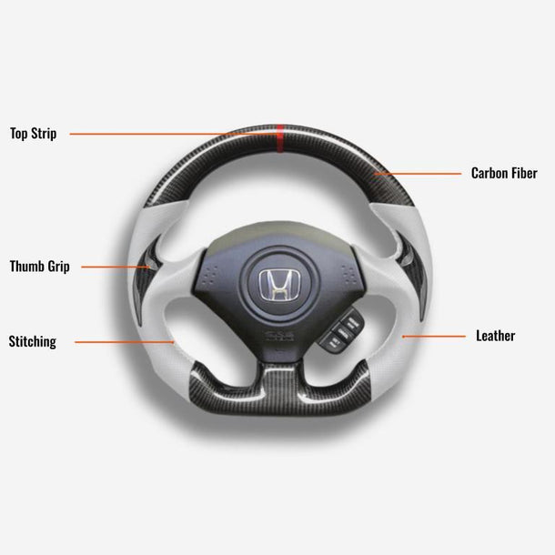 The Honda S2000 steering wheel is meticulously handcrafted from premium Japanese carbon fiber and beautifully wrapped in Italian leather, enhancing the aesthetics of your car and providing better control. The ergonomic, sporty design ensures a more responsive and engaging driving experience. Designed specifically for the Honda S2000, it fits seamlessly and provides a superior grip. The carbon fiber is coated with a UV-resistant layer to protect against the elements. For an even more thrilling drive, consider adding an LED strip. Perfect for Honda S2000 enthusiasts looking a steering wheel upgrade for a high-end custom interior.