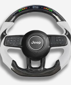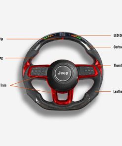 The Jeep Wrangler / Gladiator steering wheel is meticulously handcrafted from premium Japanese carbon fiber and beautifully wrapped in Italian leather, enhancing the aesthetics of your car and providing better control. The ergonomic, sporty design ensures a more responsive and engaging driving experience. Designed specifically for the Wrangler and Gladiator models, it fits seamlessly and provides a superior grip. The carbon fiber is coated with a UV-resistant layer to protect against the elements. For an even more thrilling drive, consider adding an LED strip. Perfect for Wrangler and Gladiator enthusiasts looking to build a high-end custom interior.