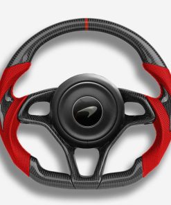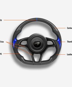 The McLaren steering wheel is meticulously handcrafted from premium Japanese carbon fiber and beautifully wrapped in Italian leather, enhancing the aesthetics of your car and providing better control. The ergonomic, sporty design ensures a more responsive and engaging driving experience. Designed specifically for the McLaren 570 and 600LT models, it fits seamlessly and provides a superior grip. The carbon fiber is coated with a UV-resistant layer to protect against the elements. For an even more thrilling drive, consider adding an LED strip. Perfect for McLaren owners looking to build a high-end custom interior.