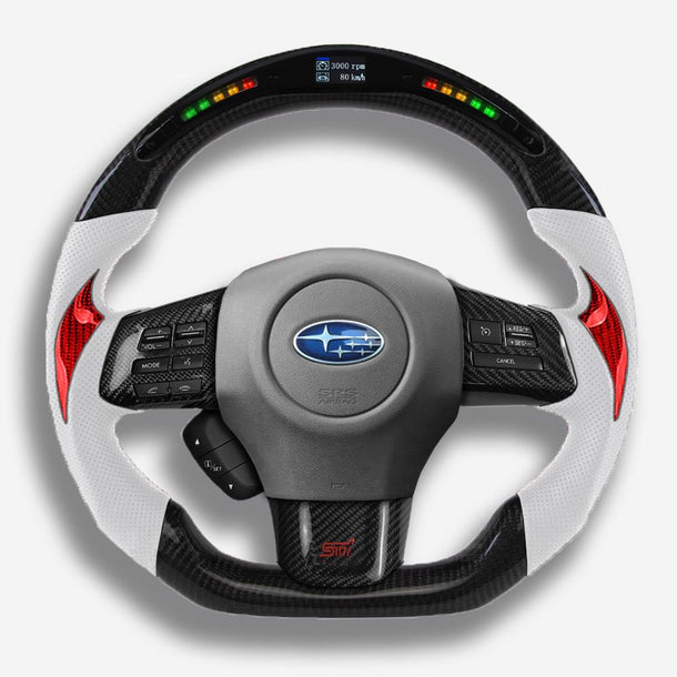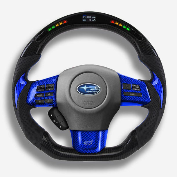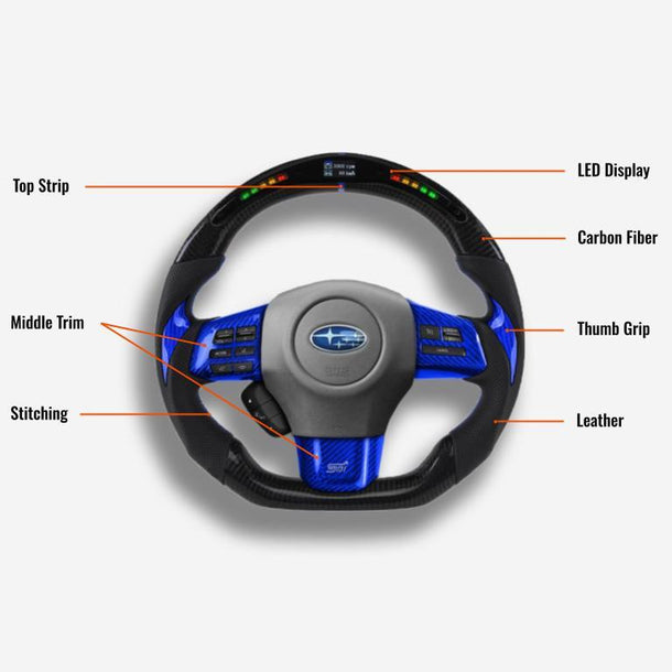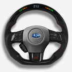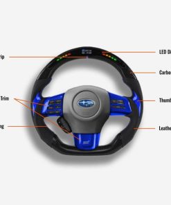 The Subaru WRX steering wheel is meticulously handcrafted from premium Japanese carbon fiber and beautifully wrapped in Italian leather, enhancing the aesthetics of your car and providing better control. The ergonomic, sporty design ensures a more responsive and engaging driving experience. Designed specifically for the Subaru WRX (2015-2021) models, it fits seamlessly and provides a superior grip. The carbon fiber is coated with a UV-resistant layer to protect against the elements. For an even more thrilling drive, consider adding an LED strip. Perfect for WRX enthusiasts looking a steering wheel upgrade for a high-end custom interior.
